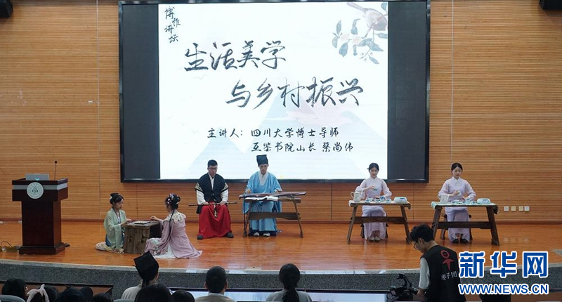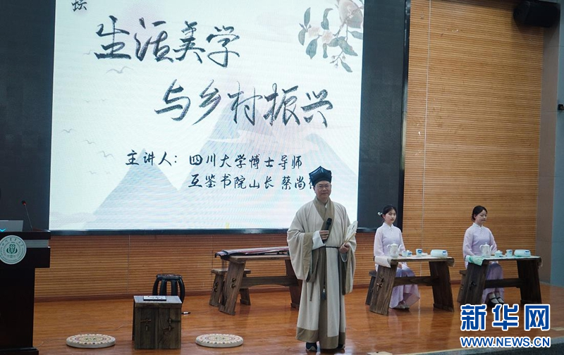 近日,四川大学文化产业研究中心主任蔡尚伟教授身着汉服、手持折扇做客四川农业大学“博雅讲坛”,带来了一场关于“生活美学与乡村振兴”的讲座,讲述如何在现代生活中挖掘和创造传统文化之美,并使之成为乡村振兴的有益助力。