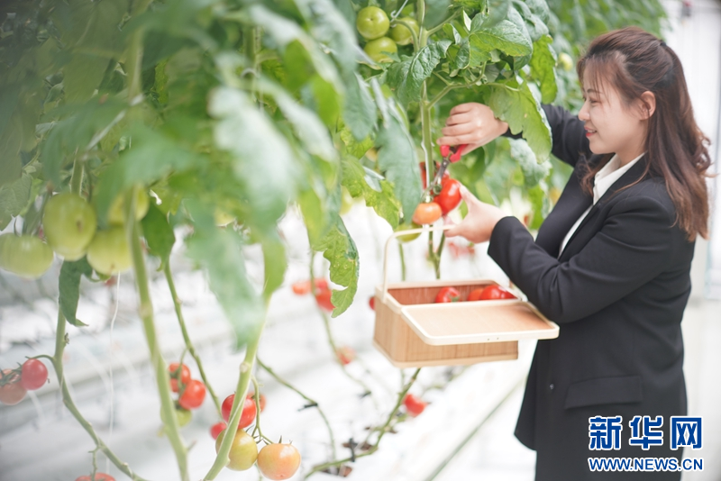 据了解,大棚里的番茄将通过“自主采摘+供应商超”的模式进行销售。同时,园区还将开展研学旅行活动。图为大棚内成熟的番茄。