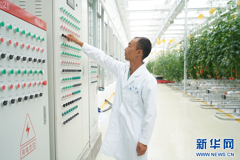 据园区技术员祝伟强介绍,大棚主体采用轻钢加钢化玻璃结构,能最大限度地利用自然光源,做到节能环保。通过应用无土栽培、智能化环控、水肥一体化自动灌溉、生物病虫害防治等技术,每平方米的番茄产量在25公斤以上。现在这批番茄已初步进入了盛产期,采收周期将持续到七月下旬。根据生长状态,预计产量在16万公斤左右,产值能突破200万元。(本组图片摄于5月9日 新华网黎涛摄)