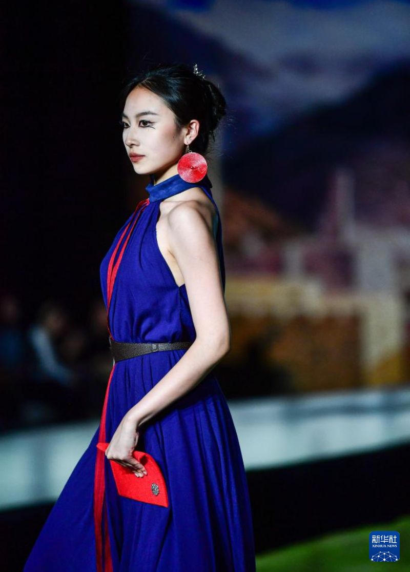 5月19日,模特在展示四川大学学生李曦和王若涵取材于羌族文化元素设计的服饰作品。新华社记者 张超群 摄