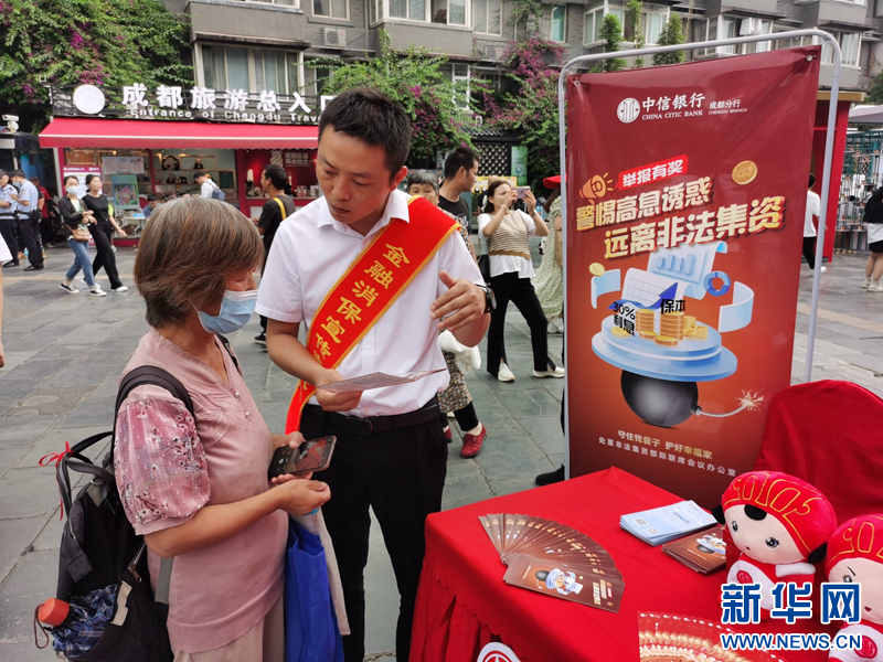 本次活动地点选在成都宽窄巷子,活动以歌舞快闪的形式与市民群众展开互动。中信银行成都分行员工现场演绎了自主改编的歌曲“反诈新说唱”,吸引大量群众参与观看。表演结束,现场工作人员邀请群众体验“防诈大转盘”小游戏、引导群众完成“防范非法集资知识答题”,向群众发放宣传折页,重点讲解消费者八大权益、个人金融信息安全保护、防范电信诈骗、征信修复等相关知识。当天参与人数达数百人,发放相关宣传折页千余份、发放宣传礼品200余份。