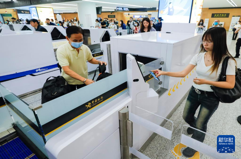 6月21日,在成都天府国际机场,入境旅客通过智能双通道。该智能双通道集成健康申明卡验核、体温监测、辐射探测、手提行李机检等8项功能为一体,单名旅客通行速度比单通道可提升40%。新华社记者 沈伯韩 摄
