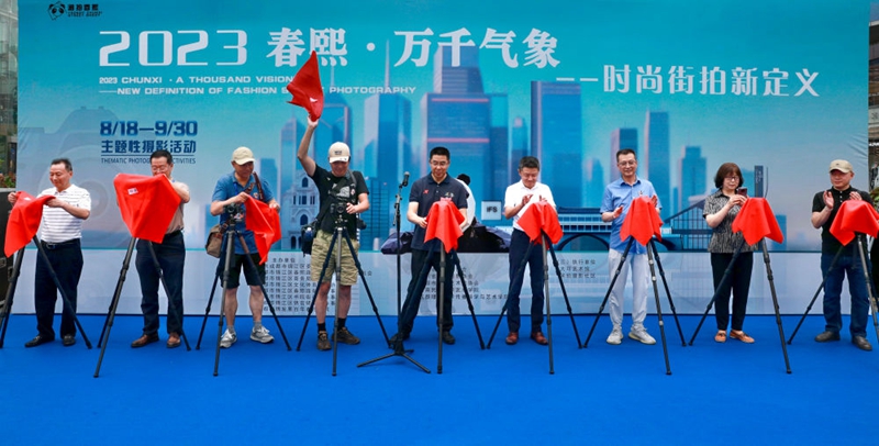 8月18日,嘉宾们为开机仪式揭幕。开机仪式上,成都市锦江区政协副主席、春熙路时尚活力区管委会党工委书记杨小明介绍,春熙商圈作为最具国际标识度的商圈,一直以来都是时尚、潮流的代名词,更蕴藏有丰富的城市历史文化底蕴和地域特色。大可艺术馆创始人、活动总策划王琦解释此次时尚街拍活动的意义,就是希望通过摄影师们用专业的眼光在春熙路商圈发现美好、记录美好,宣传春熙路的时尚、活力和温暖,展示一个商贸繁荣、包容温暖的春熙路。中国摄影金像奖获得者、街拍中国创始人严志刚说:“街拍摄影是一种能够记录历史、表达情感、展现个性、传达信息的艺术形式。希望此次活动可以向大家展示街拍的魅力,创建时尚新定义”。