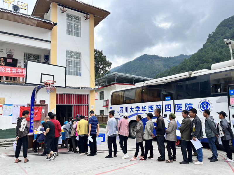 在甘洛县新茶乡新茶村、斯觉镇格布村,华西第四医院医护团队将体检大巴开进彝乡,让当地村民能就近享受到优质医疗服务。