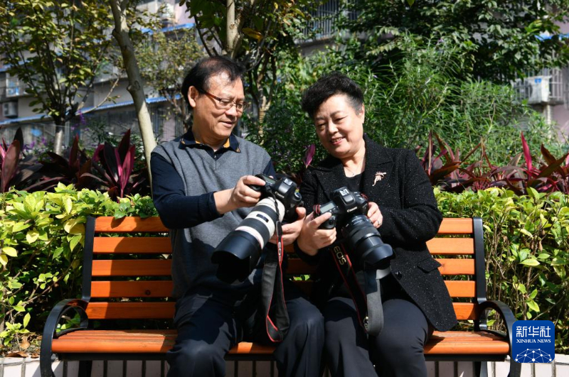 10月21日,夫妇二人互相展示自己的拍摄作品。新华社记者 胥冰洁 摄