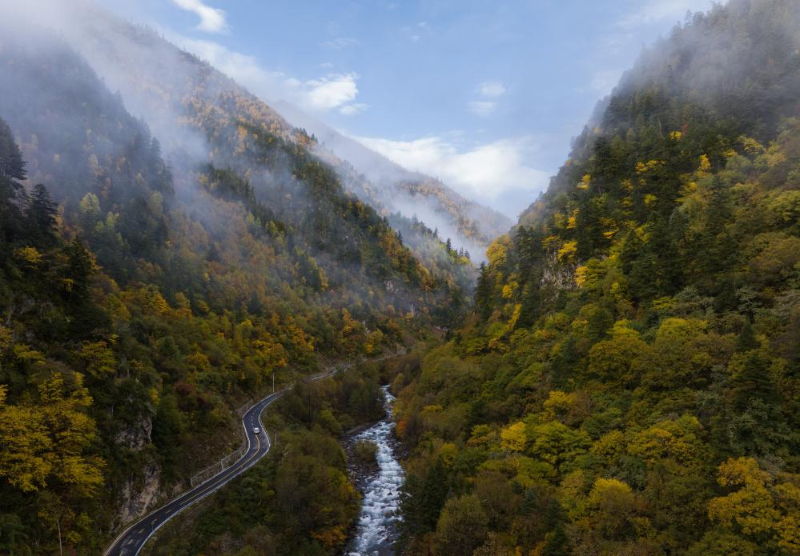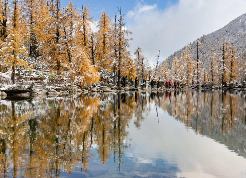 党岭村位于四川省丹巴县丹东镇,这里植被茂密、湖泊众多、雪山壮美。深秋时节,这处川西秘境呈现出一幅幅美丽画卷。