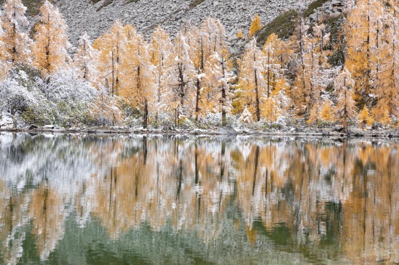 彩林倒映在党岭村葫芦海中(10月27日摄)。新华社记者 江宏景 摄