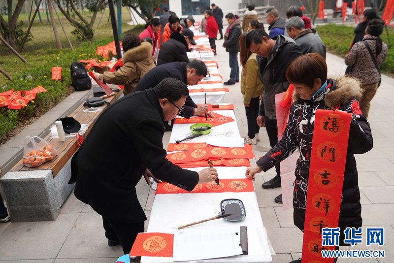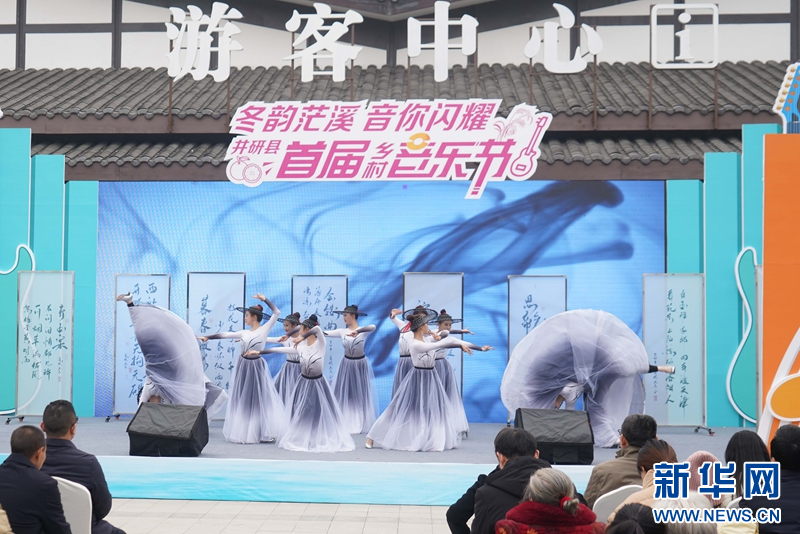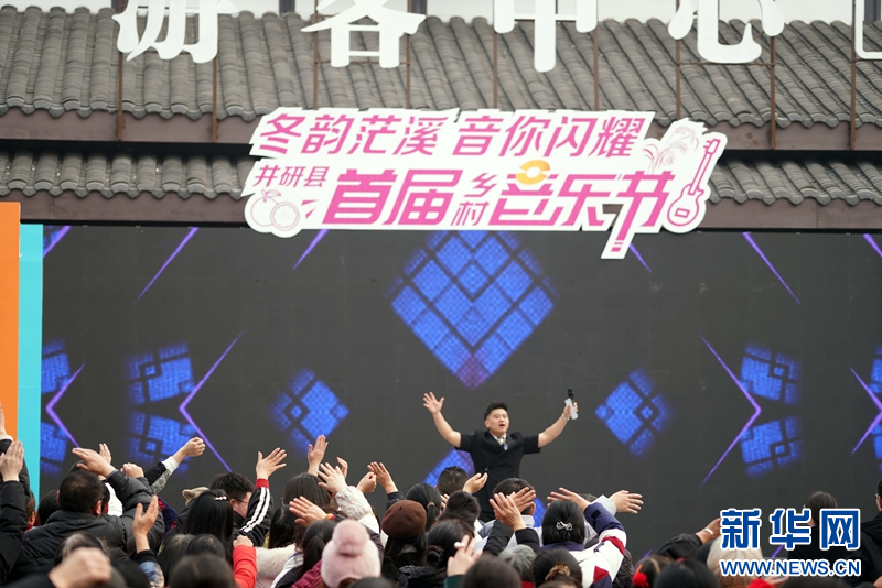 12月29日,乐山井研县庆元旦暨首届乡村音乐节在千佛镇雷氏民居游客服务中心举行。歌舞、杂技、魔术等节目轮番登场,村民在热闹喜庆中感受到浓浓的节日氛围。活动现场,井研柑橘、大米、鸡蛋、腊肉等特色农产品琳琅满目,吸引不少游客前来品尝、购买。现场还设有纯复剪纸、井研农民画等本土民俗文化展示区供村民和游客参观、体验。井研县书画(法)协会会员为现场观众书写春联福字,为大家送上新春祝福。(本组图片摄于12月29日 新华网黎涛摄)