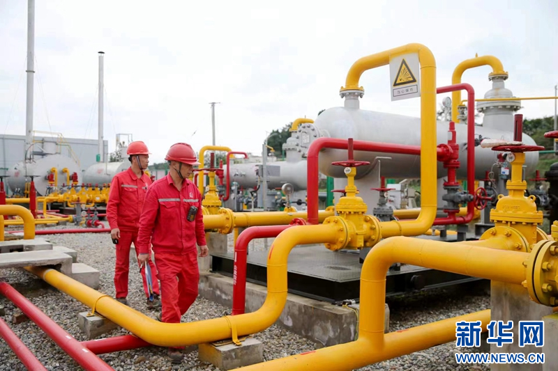采气站员工巡视检查井站设备运行。新华网发(袁鹏 摄)