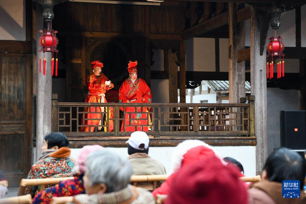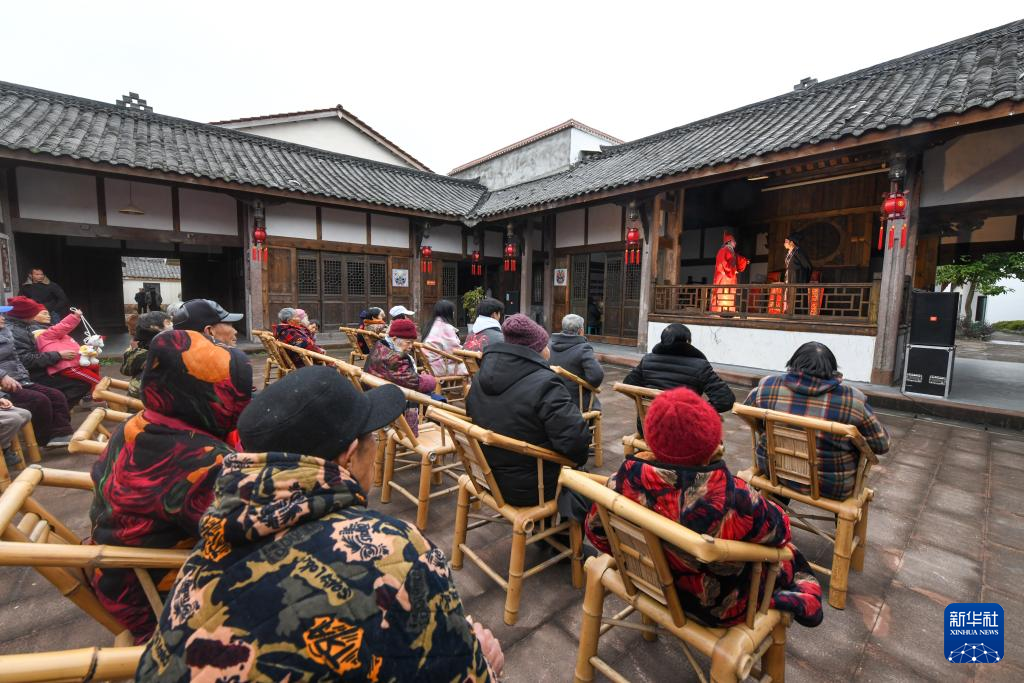 1月25日,四川省资阳市晏家坝村村民在观看川剧表演。新华社记者 唐文豪 摄
