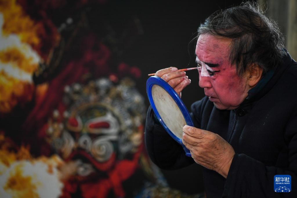 1月25日,在四川省资阳市晏家坝村,川剧演员秦祖金为演出做准备。新华社记者 唐文豪 摄