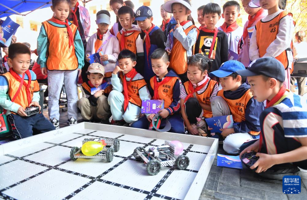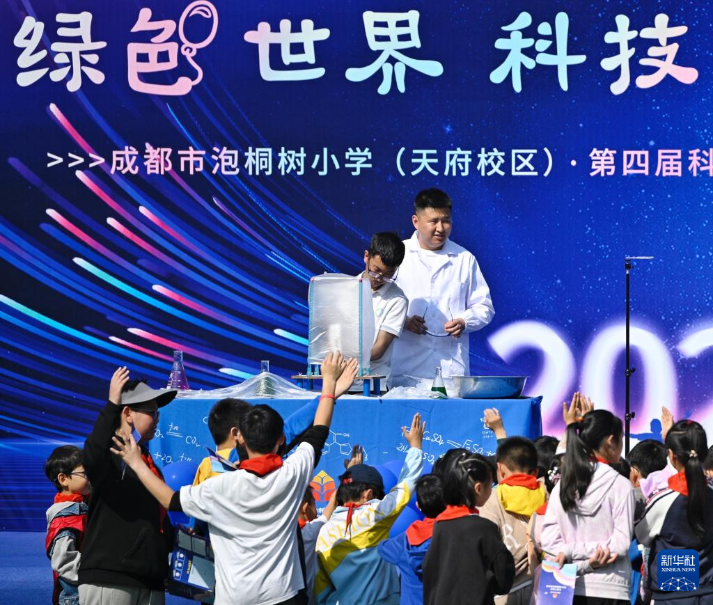 3月29日,四川省成都市泡桐树小学(天府校区)举办“绿色世界,科技引领,CHAT未来”第四届校园科技节活动,学生们在科技节上观看无人机表演,体验操控机器人,参与趣味科学实验等,近距离感受科技的魅力。