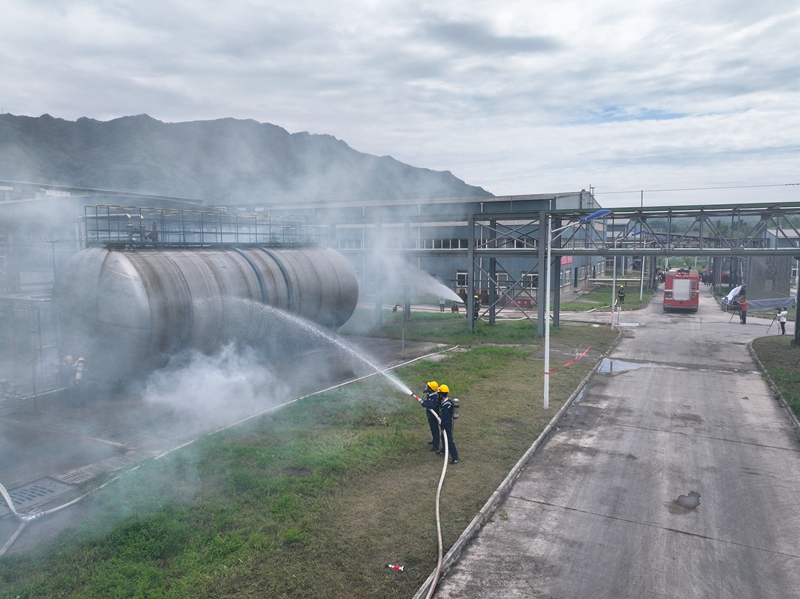 此次演练模拟了四川中信华诚化工科技有限公司二硫化碳再生管线法兰损坏,发生二硫化碳泄漏并着火的事故场景。各部门在现场指挥部的指挥下各司其职、紧密配合,专业高效迅速地完成救援任务,有效验证了应急预案的科学性、合理性,磨合了各部门的应急协调机制,提升了基层的应急救援能力,强化了对企业员工的宣传培训效果,达到演练的预期目标。