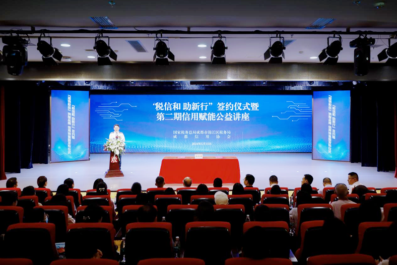 为更好发挥纳税信用在“诚信社会”总体建设中的积极作用,引导市场主体诚信纳税,助力区域经济持续、健康、高质量发展,5月15日,国家税务总局成都市锦江区税务局(以下简称“锦江税务”)、成都信用协会在成都市文化馆举行“税信和 助新行”签约仪式,携手探索共建“税务+信用”合作体系。活动现场还发布了“锦江区市场主体‘信用锦囊’”和锦江区税务局“濯锦税心”纳税服务品牌。