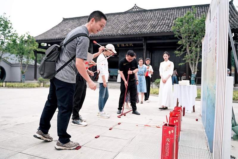 活动现场还设置了“投壶”“捶丸”等中国古代体育运动项目,邀请参与者体验古人的特色文体娱乐活动。