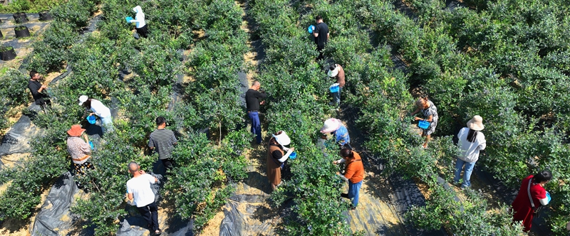 游客采摘蓝莓。(谌子楷 摄)
