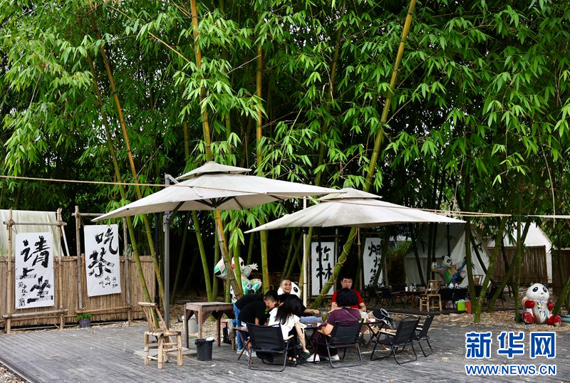 6月16日,游客在新都的乡村喝茶休闲。新华网发(张可凡 摄)