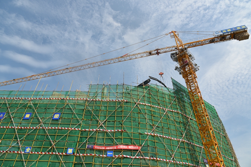 7月25日,在鹭栖湖体育公园二期项目建设现场,吊车往来,机械轰鸣,工人们正在进行收边工作。