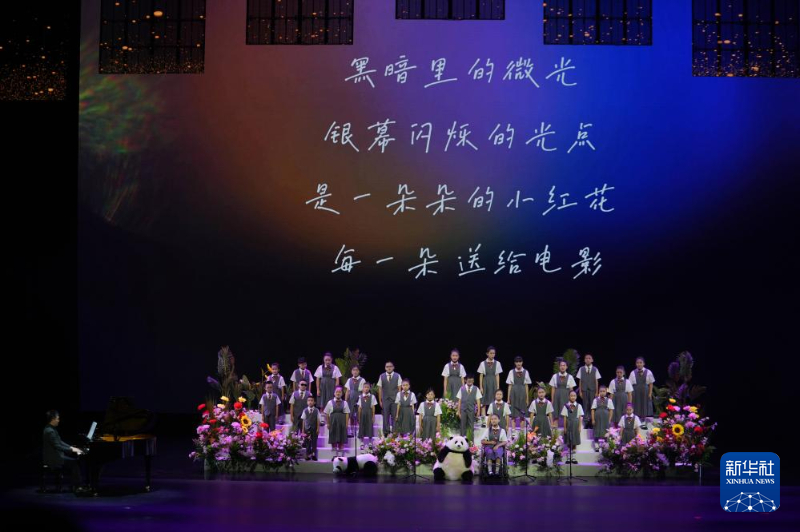 这是8月2日在第37届大众电影百花奖系列活动开幕式上拍摄的童声合唱《送你一朵小红花》。新华社记者 江宏景 摄