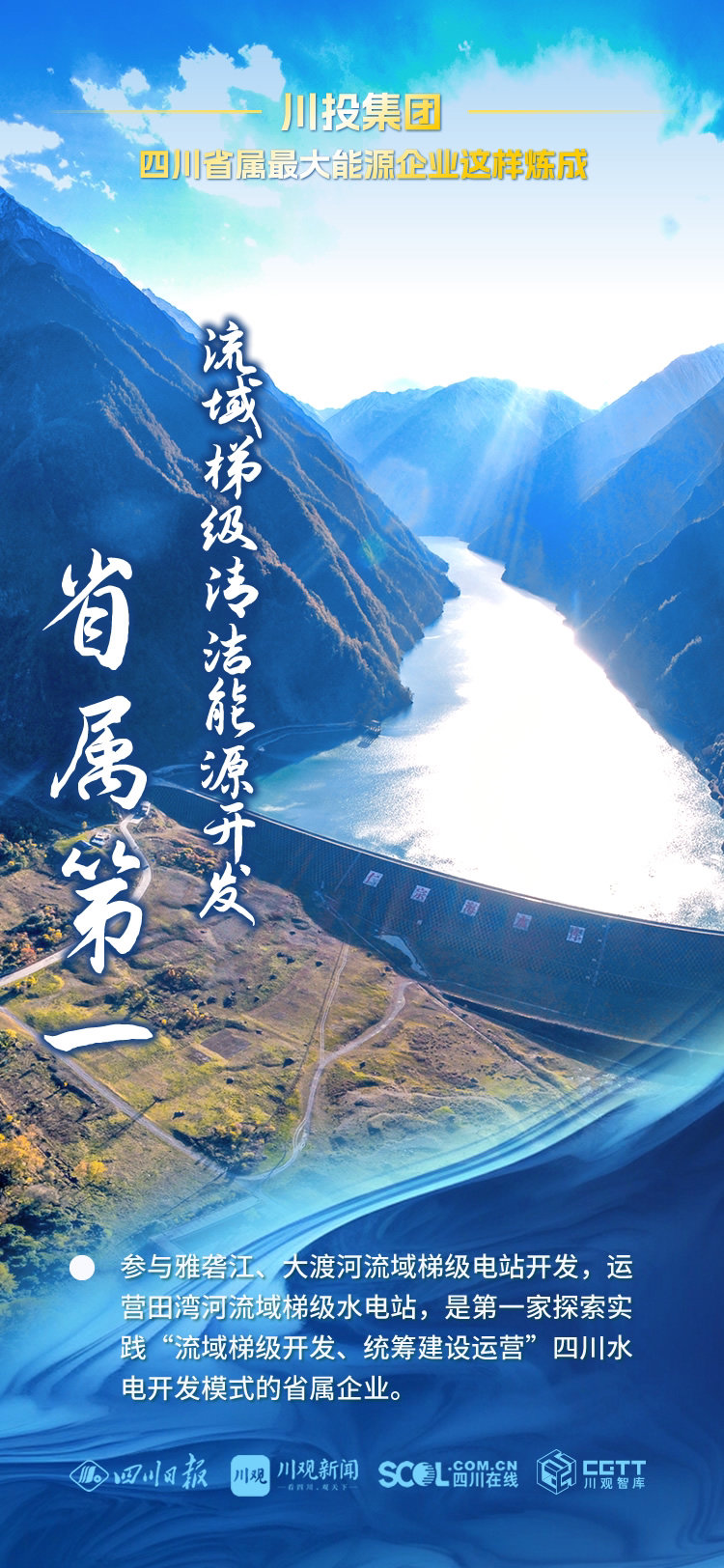 参与雅砻江、大渡河流域梯级电站开发,运营田湾河流域梯级水电站,是第一家探索实践“流域梯级开发、统筹建设运营”四川水电开发模式的省属企业。
