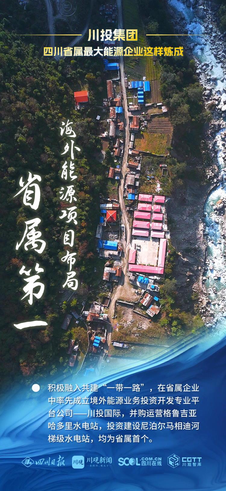 积极融入共建“一带一路”,在省属企业中率先成立境外能源业务投资开发专业平台公司——川投国际,并购运营格鲁吉亚哈多里水电站,投资建设尼泊尔马相迪河梯级水电站,均为省属企业中首个。