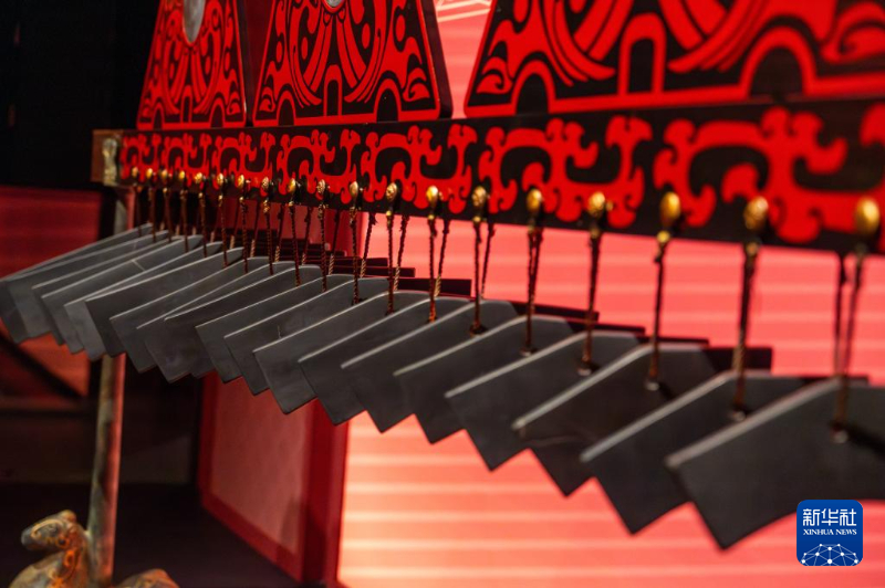 9月27日拍摄的展出的铁编磬。新华社记者 薛晨 摄