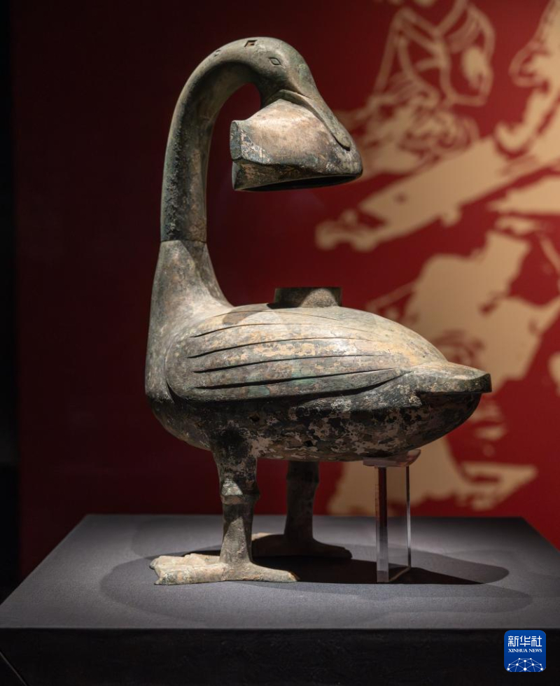 9月27日拍摄的展出的雁鱼形铜灯。新华社记者 薛晨 摄