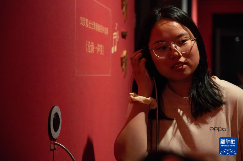 9月27日,观众在试听出土编钟通过音乐复原创作的《沧海一声笑》。新华社记者 薛晨 摄