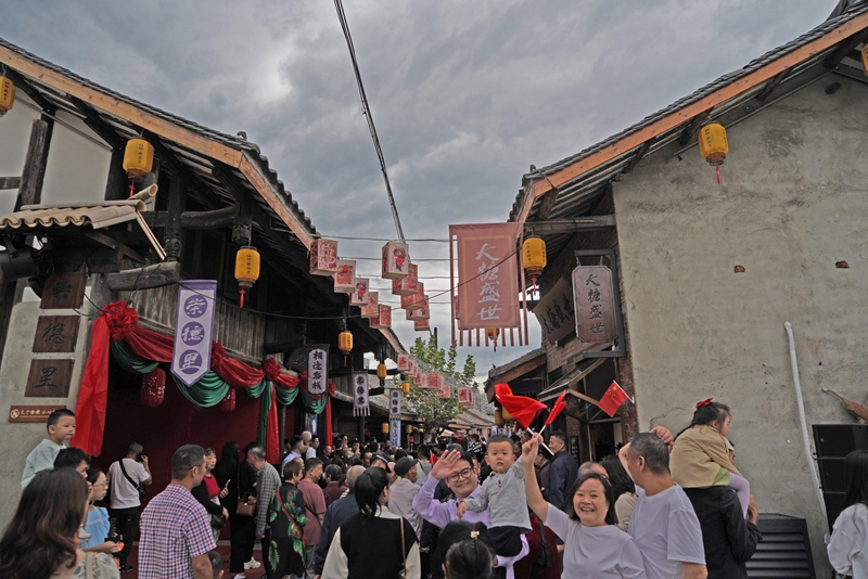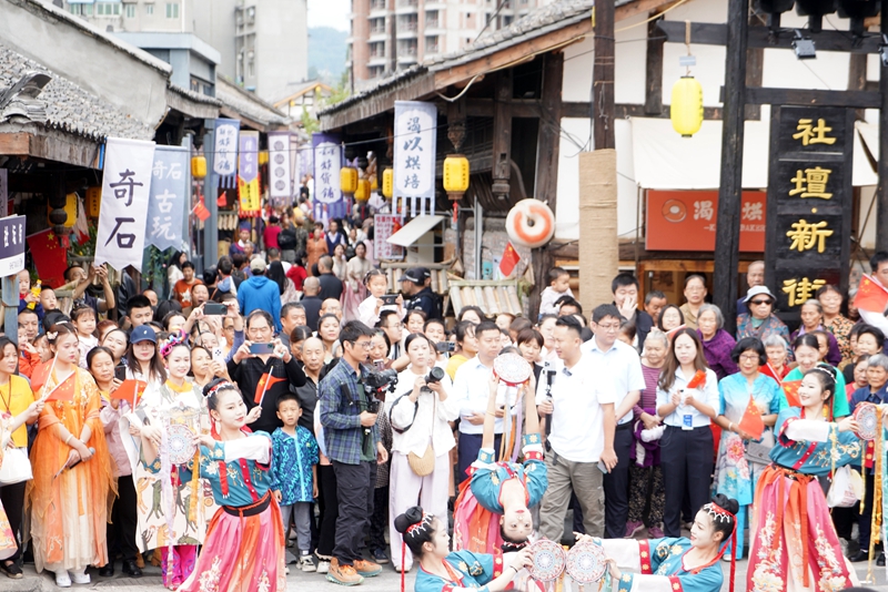 10月1日,四川省乐山市夹江县社坛·新街子老街推出了缤纷多彩的活动,与往来旅客共度假期。据了解,国庆期间,社坛·新街子老街将推出三大主题巡游活动:“老街喜事之宋式婚礼”“嘉阳驿道之马帮巡游”“金榜题名之状元回乡”和沉浸式演艺活动:NPC互动、街头快闪、传统杂技、古风宴席、古风歌舞。当老街与“国潮”相遇,游客在古韵新潮中欢度国庆。(完)