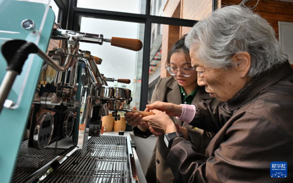 新华社成都10月11日电(记者薛晨)磨豆,压粉,萃取,打奶泡,倒入咖啡液……成都“忘不了”咖啡厅84岁的“咖啡师”代秀玉在社工肖玲的指导下制作出了一杯咖啡,交到了顾客手中。可转眼,代秀玉又忘记了重复过无数遍的制作流程。