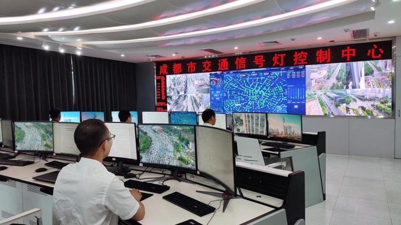 成都市交通信号灯控制中心。(成都交通投资集团供图)