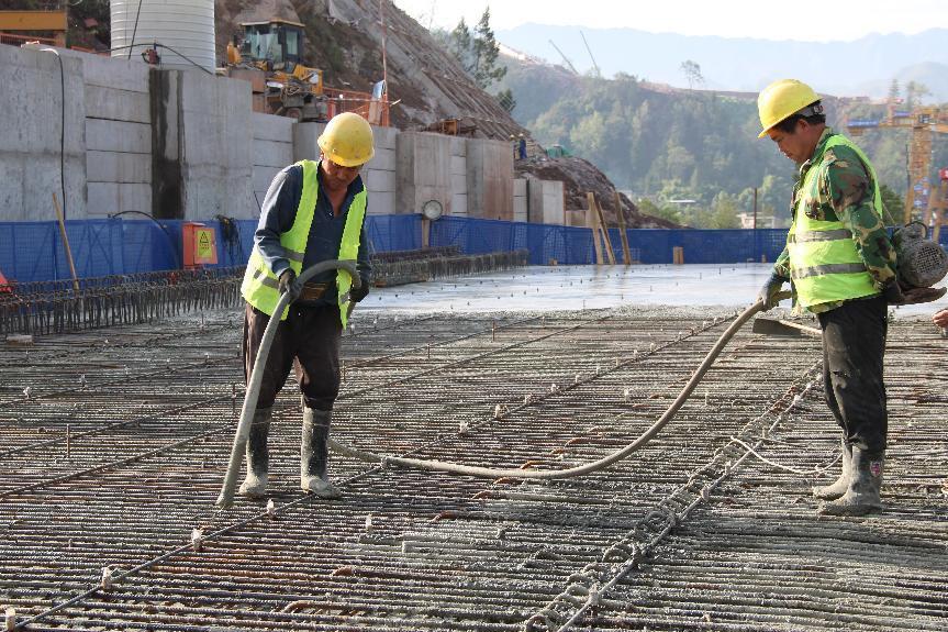 振捣作业。(中铁六局西渝高铁康渝项目部供图)