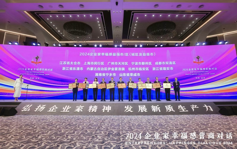 10月25日,在“2024企业家幸福感营商对话”活动上,成都市双流区凭借其在营商环境、政策支持、市场机会等方面的表现,获评2024年度“企业家幸福感最强市(区)”。