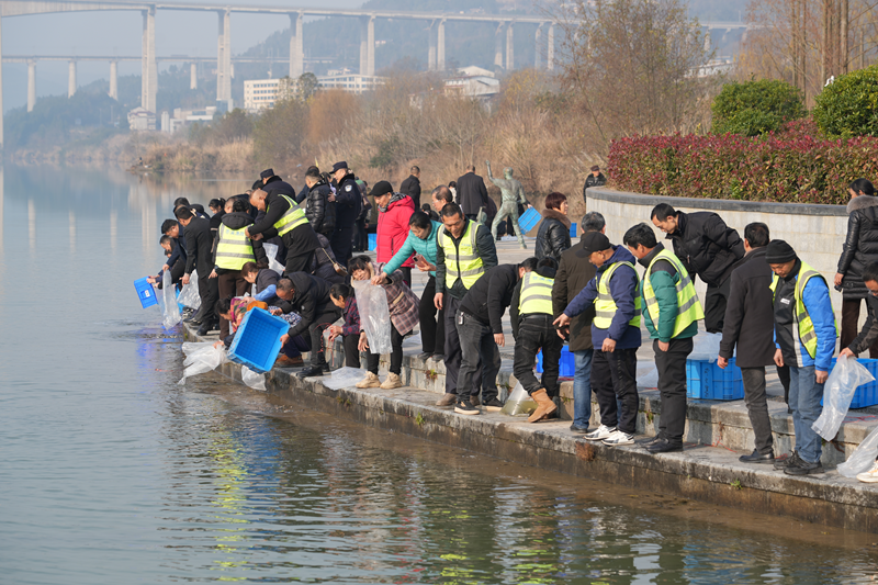1月9日上午,四川省广元市苍溪县举行2025年增殖放流活动,将20万尾鱼苗放流嘉陵江。