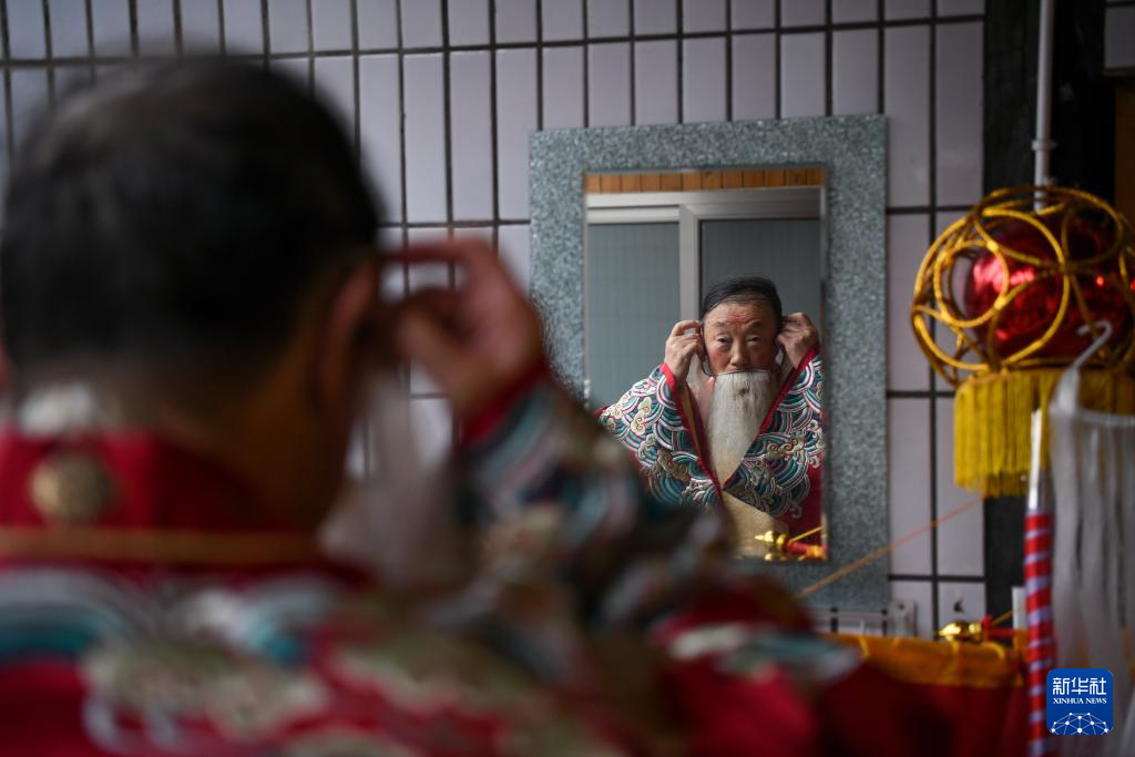 1月7日,阆中古城启动春节文化系列活动,张忠和在家中穿衣准备。新华社记者 胥冰洁 摄