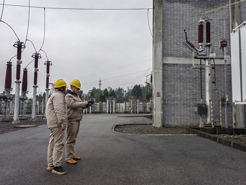 1月26日,国网达州供电公司运维人员在220千伏团坝变电站开展特殊巡视。(国网四川省电力公司达州供电公司供图)