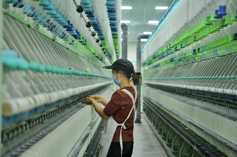 亚缇纺织智能化纺纱设备(陈阵锋摄)