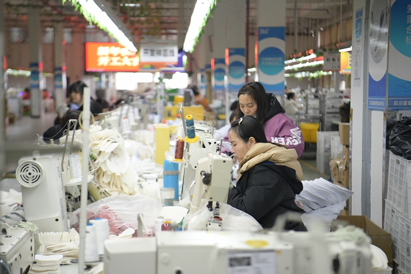 “我们企业一期主要承担成品加工任务,目前拥有员工1100余人,到岗率约96%。早在去年,今年一季度的生产订单就已全部排满。现有的六条生产线,每条生产线每月产量接近7万双鞋,预计一季度产量将突破100万双,产值有望逼近1亿元。”该企业行政主管胡小波介绍。不仅如此,为了满足日益增长的市场需求,该企业还计划新增2条针车线,预计再招聘300人左右。