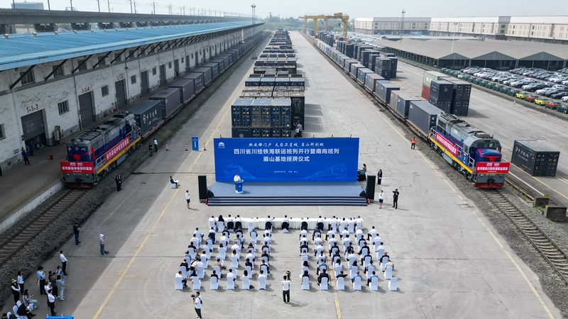 随着一声令下,省市联动川桂铁海联运班列和中老国际联运班列鸣笛启程。本次川桂铁海联运班列的开行,将实现与北部湾港72小时直达,较传统运输时效大幅提升40%,促进物流提质增效。