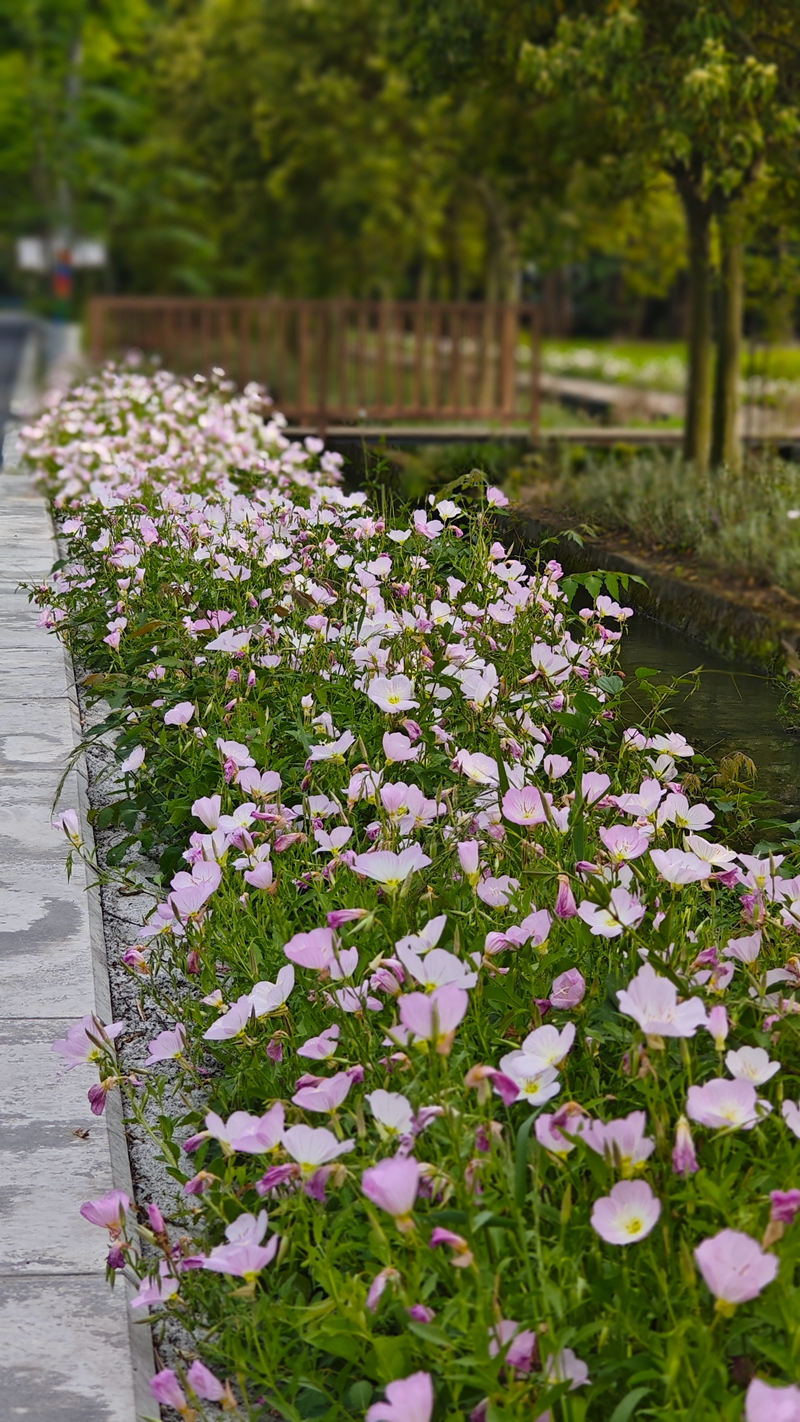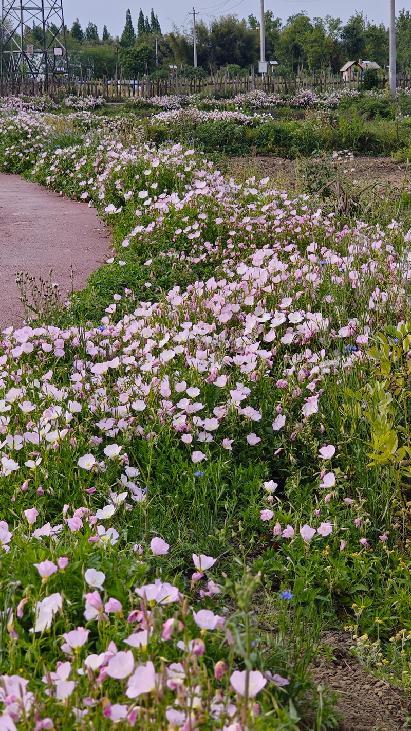 近日,四川省成都市青白江区城厢镇十八湾村的一片月见草“花海”吸引了许多市民前来拍照打卡。目前正是月见草的盛花期,粉嫩浪漫,“圈粉”无数。该花花期3-4个月,微风吹拂阳光和煦,趁着花开正好,约上三五好友一起去打卡吧。