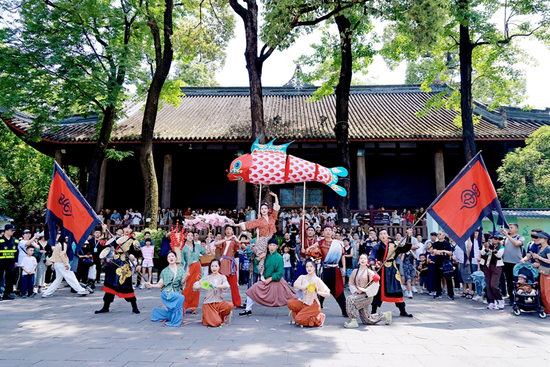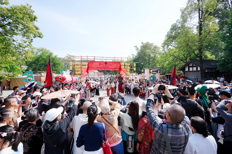 5月1日—5日,“蜀汉百景集·青梅煮酒话英雄”主题活动在武侯祠博物馆举办。开街仪式、主题演出、点位表演、戏剧巡游、非遗集市、互动体验六大主题活动构建起沉浸式三国世界。