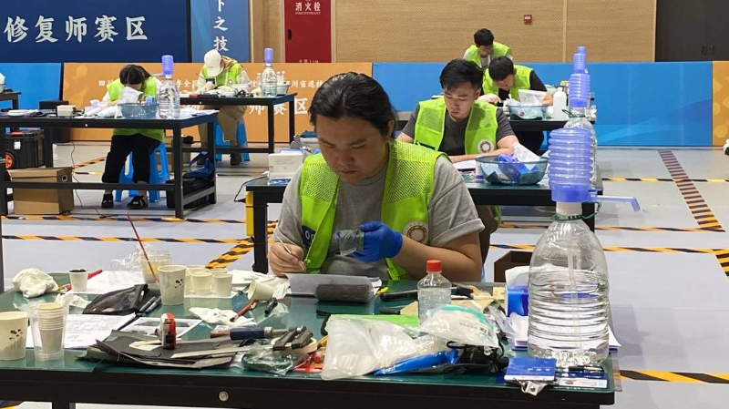 大赛现场正在修复金属器物的选手