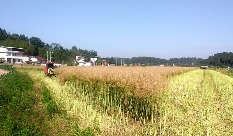 机收油菜现场。(谢义 摄)