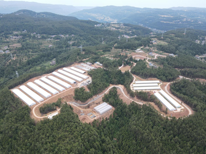 四川富强旺生建设有限公司生产经理王强介绍,苍溪肉鹅全产业链建设项目于2024年4月开工建设,目前已经搭建完成15个养殖大棚,占地2万余平方米,修建配套管理用房600平方米,配电房300平方米,粪污处理厂2000余平方米,整个项目主体基本完工,预计在6月20日左右完成剩下的道路硬化等基础设施建设。