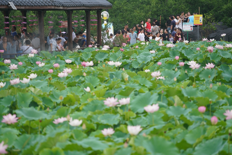 邓坝村的荷花引来众多游客。(黎涛 摄)