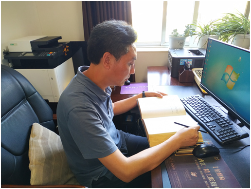 内江市市中区地方志研究室主任翁得志查寻考证抗战期间该区的糖业情况。(中共内江市委党史地方志研究室 供图)
