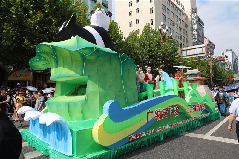 非遗民俗巡游中的花车。新华网发(曹鹏 摄)