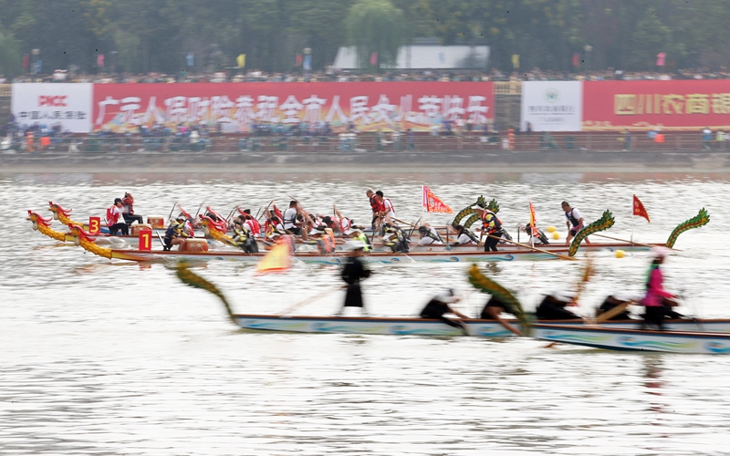 开幕式后,2025年中国(广元)国际凤舟赛开赛。嘉陵江上,来自国内外的23支凤舟队劈波斩浪,选手们喊着整齐的号子,奋力划动船桨,激起层层水花。岸边观众的欢呼声、加油声此起彼伏,不少人举着手机记录精彩瞬间。“第一次现场看凤舟赛,太震撼了!”来自成都的游客王嘉茹说,她提前一个星期就订好了车票,“不仅要看比赛,还想逛逛剑门关、昭化古城,感受三国文化。”