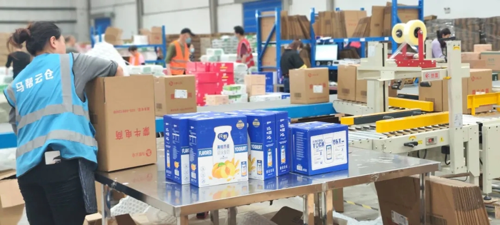 马帮云仓仓库内,工作人员正在分拣、打包商品。(天府新区党群工作部 供图)