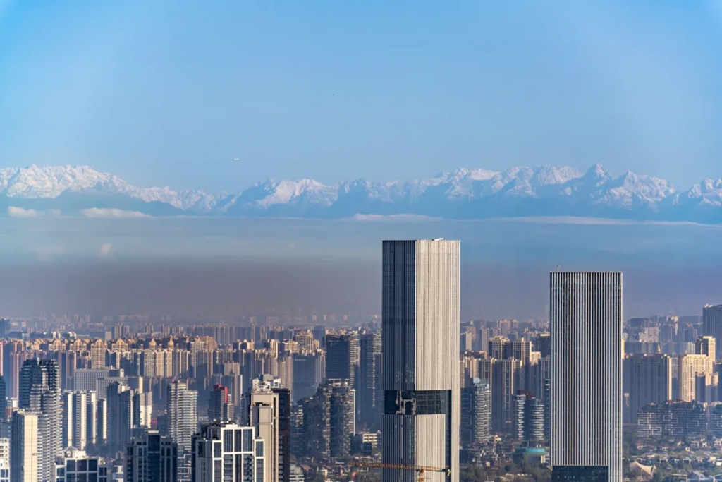 在天府新区遥望雪山。李懿 摄